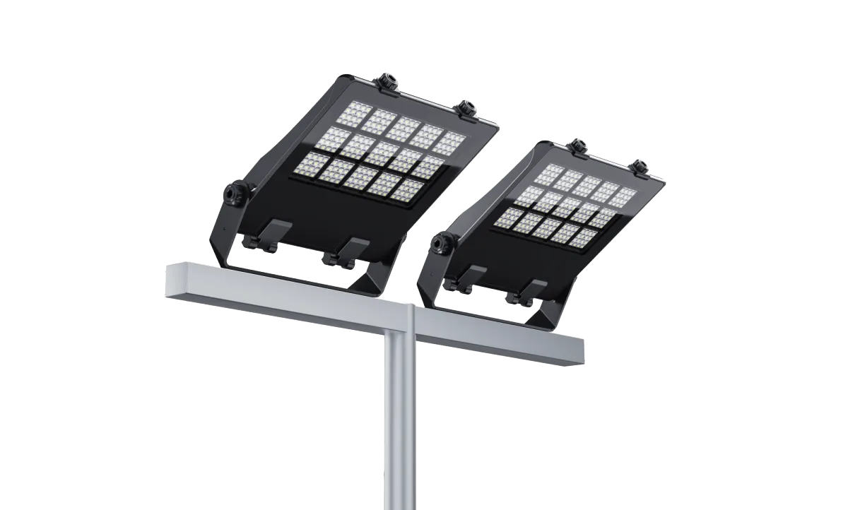 Proyector LED de última generación con 190 lm/W. Diseñado para estadios, puertos y zonas industriales, resistente IP66 e IK08.