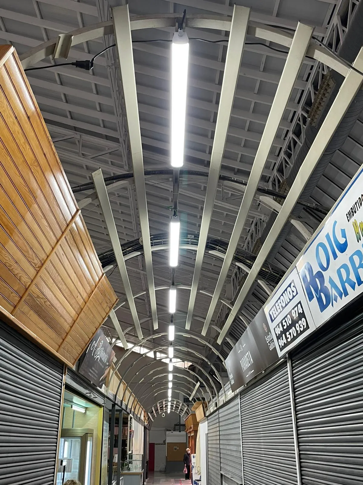 Campana lineal LED de 180 lm/W. Ópticas rectangulares que optimizan la luz en pasillos y almacenes altos.