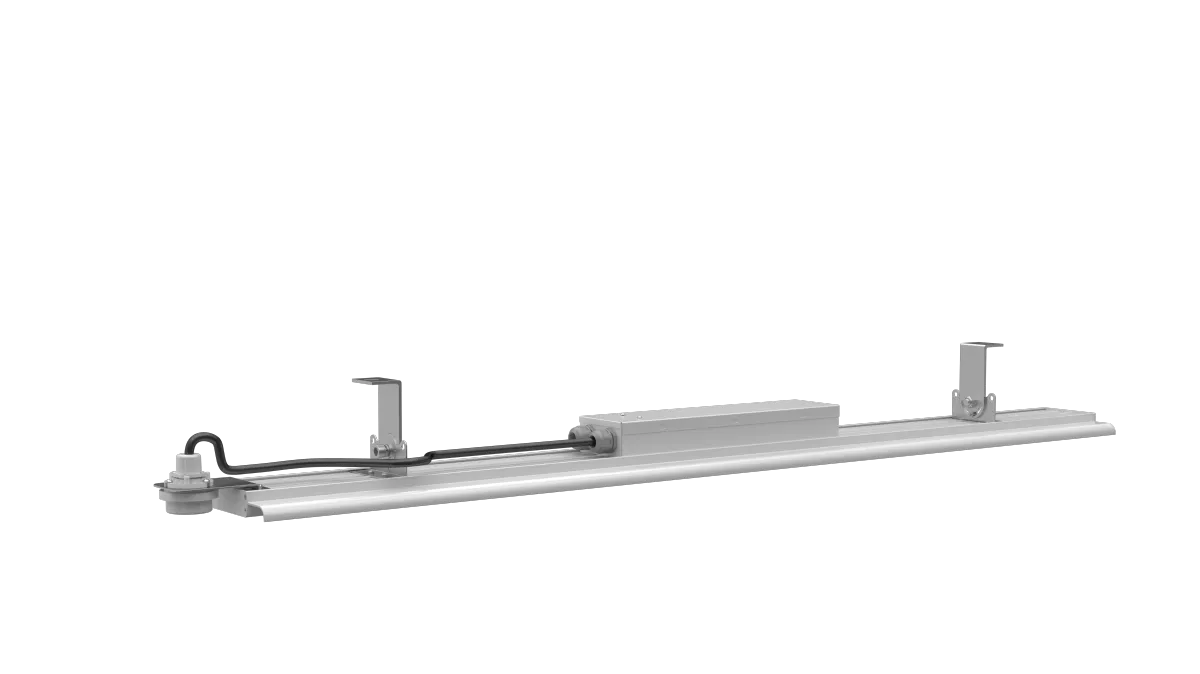 Campana lineal LED de alta eficiencia (180 lm/W) diseñada para almacenes, fábricas y centros logísticos. Su cuerpo de aluminio extruido AL6063, ópticas asimétricas y control DALI-2 o 1–10V garantizan uniformidad lumínica, bajo deslumbramiento y máxima durabilidad.